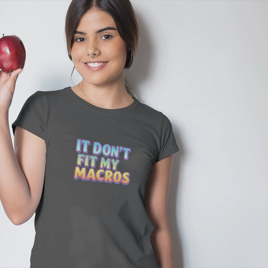 Bring a playful touch to your wardrobe with this Funny Macros T-Shirt! This tee is perfect for any gym-goer or food lover who appreciates a light-hearted take on nutrition and tracking. The vibrant graphic and humorous vibe are sure to spark a conversation. Crafted from soft, lightweight, and breathable cotton, this shirt is comfortable for your workout, a weekend barbecue, or just lounging at home. It's a great funny fitness gift for birthdays, holidays, or anyone dedicated to the macro life!